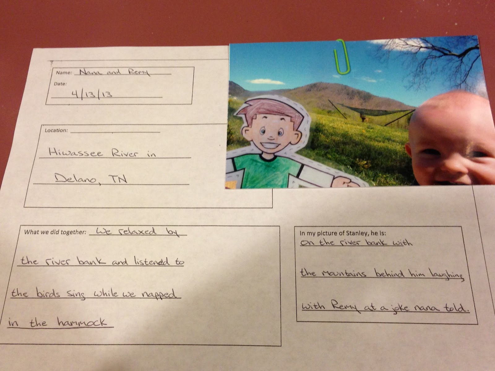 Hi! I’M Flat Stanley! I got sent to Ian’s Great Grandma and Great Grandpa’s house. Do you want me to tell you about my trip? Okay. I will tell you. When I got there I had pancakes.